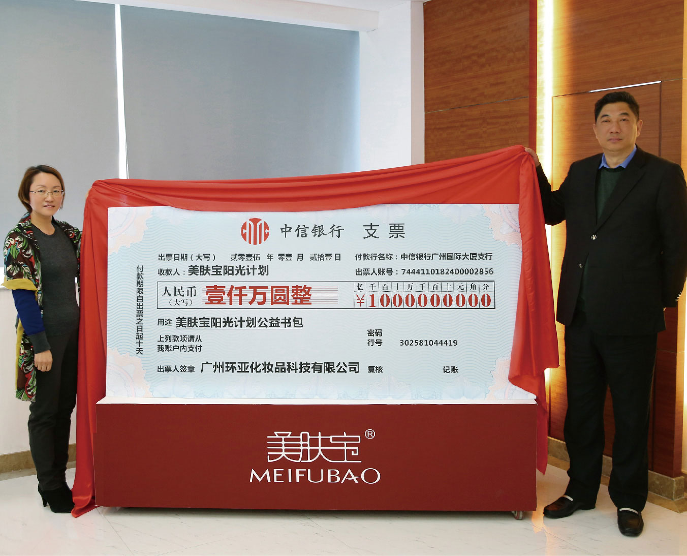 2015年,环亚集团投入一千万元设立“美肤宝阳光计划”公益基金,着力关爱留守儿童的健康成长。