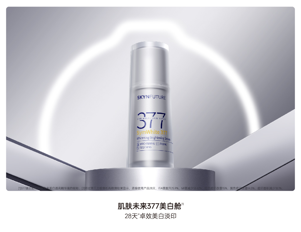 「始于377 超越377」肌肤未来率先与全球顶尖原料供应商德之馨深度共研打造377系列大单品,并成为国内研究推广377成分的先行者与引领者。