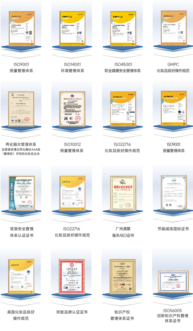 环亚目前拥有国内两大生产基地以及国外澳大利亚生产基地,其建筑总面积达到了171800平方米,共拥有63条生产线。其中,国内的两大生产基地均以GMPC的标准设计和建造;澳洲生产基地则严格按照GMPC和TGA的标准设计和建造,拥有全自动化无菌车间、智能生产控制系统等,可从事化妆品及药品的生产。