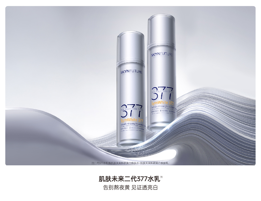 「始于377 超越377」肌肤未来率先与全球顶尖原料供应商德之馨深度共研打造377系列大单品,并成为国内研究推广377成分的先行者与引领者。